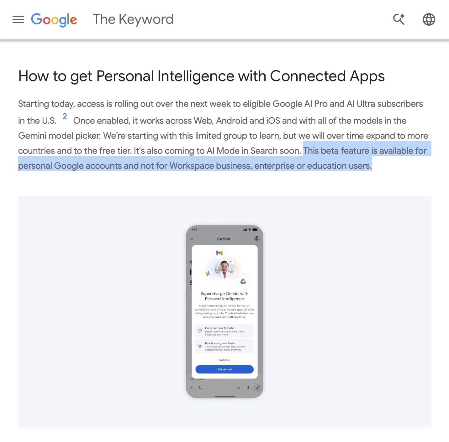 This line in Google’s announcement about Gemini’s new personal intelligence feature makes me so frustrated. It’s been my biggest complaint about Google for over a decade.