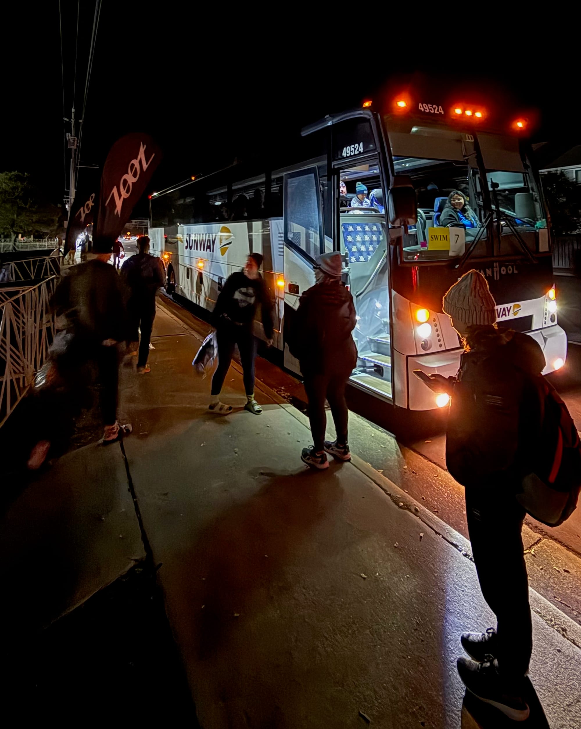 Of all the dumb things about this sport, the early alarm on race day is really up there as the dumbest. This race was even earlier than most because after setting up my bike in T1, we would have to hop onto a bus and ride out to the swim start.