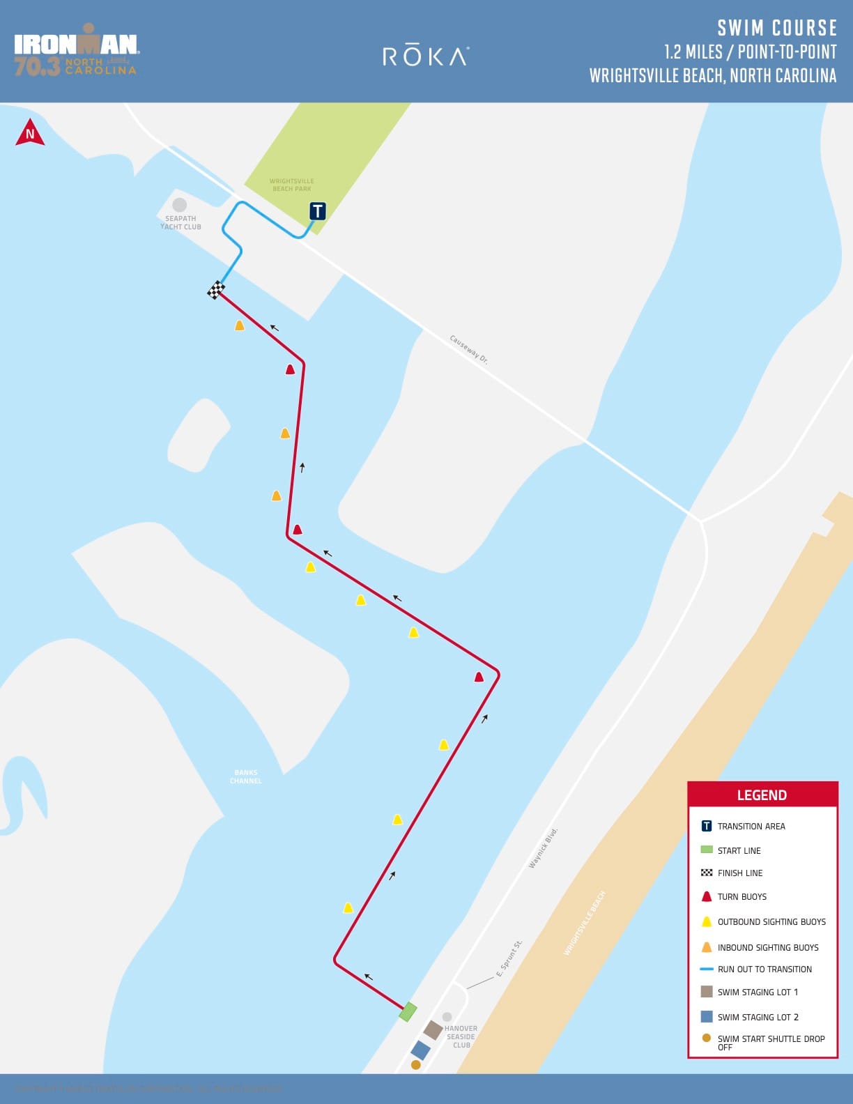 This is a great swim course. I never felt cramped except at the turn buoys. It can be a little difficult to sight the buoys among all the houses along the coast. But otherwise, it’s just a straight shot towards T1.