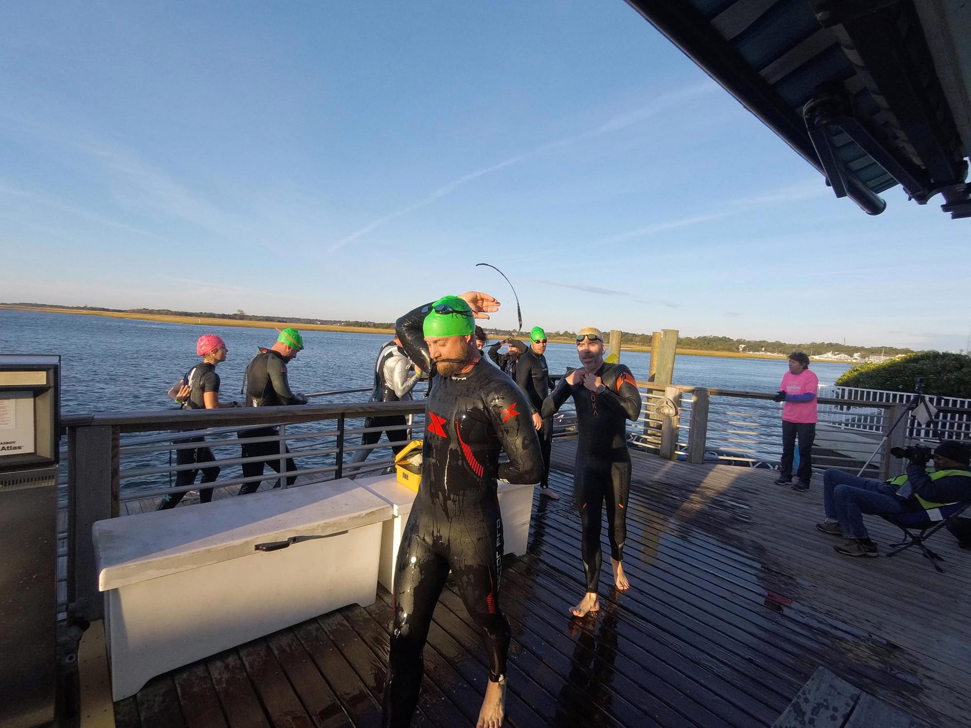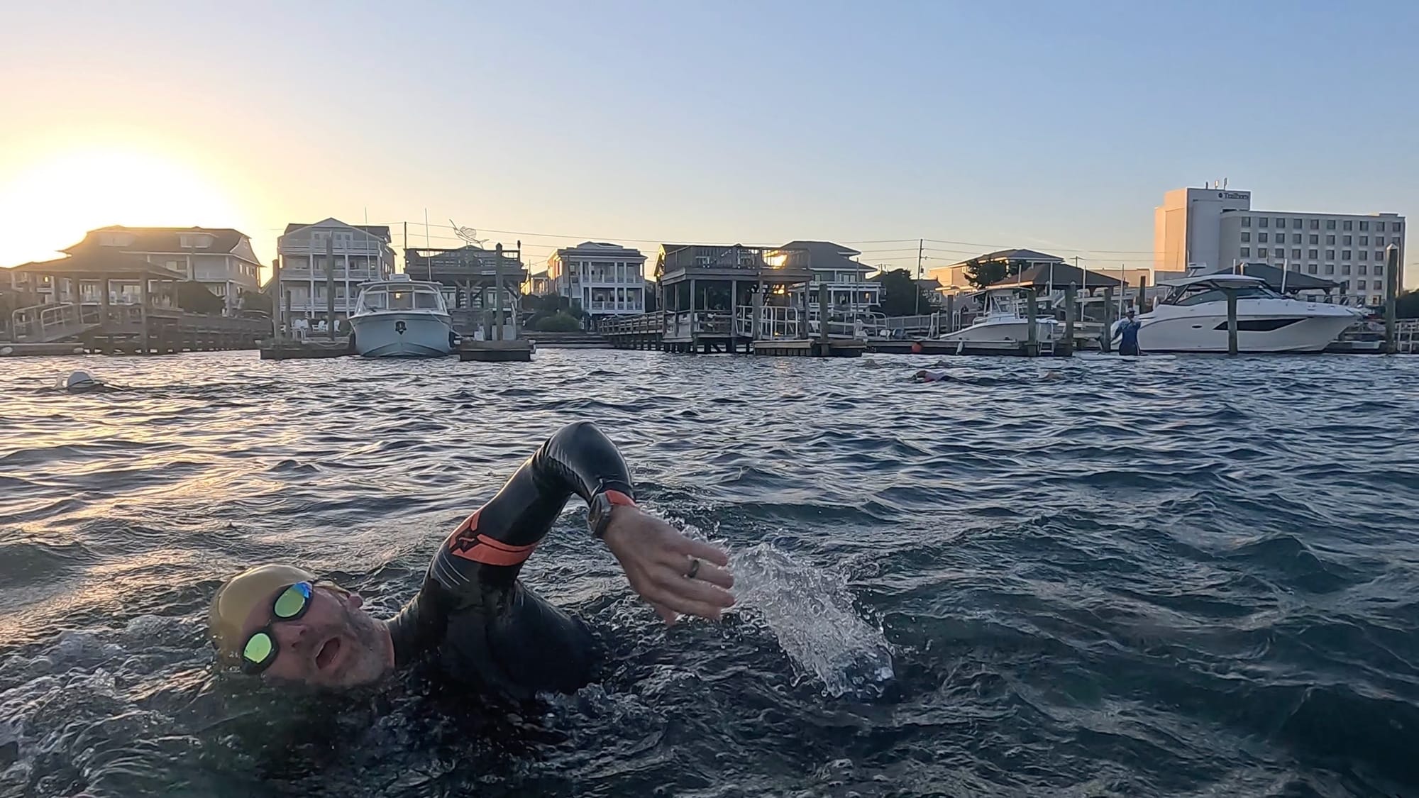 The incoming tide was noticeable…and very welcome! The only callout is that it’s a bit different of a sensation compared to a downriver swim like in Chattanooga. The tide came at an angle to the course. If you aren’t regularly sighting, that tide will actually push you off course. It certainly helps speed us along, but you also need to be aware of it compared to a downriver swim.