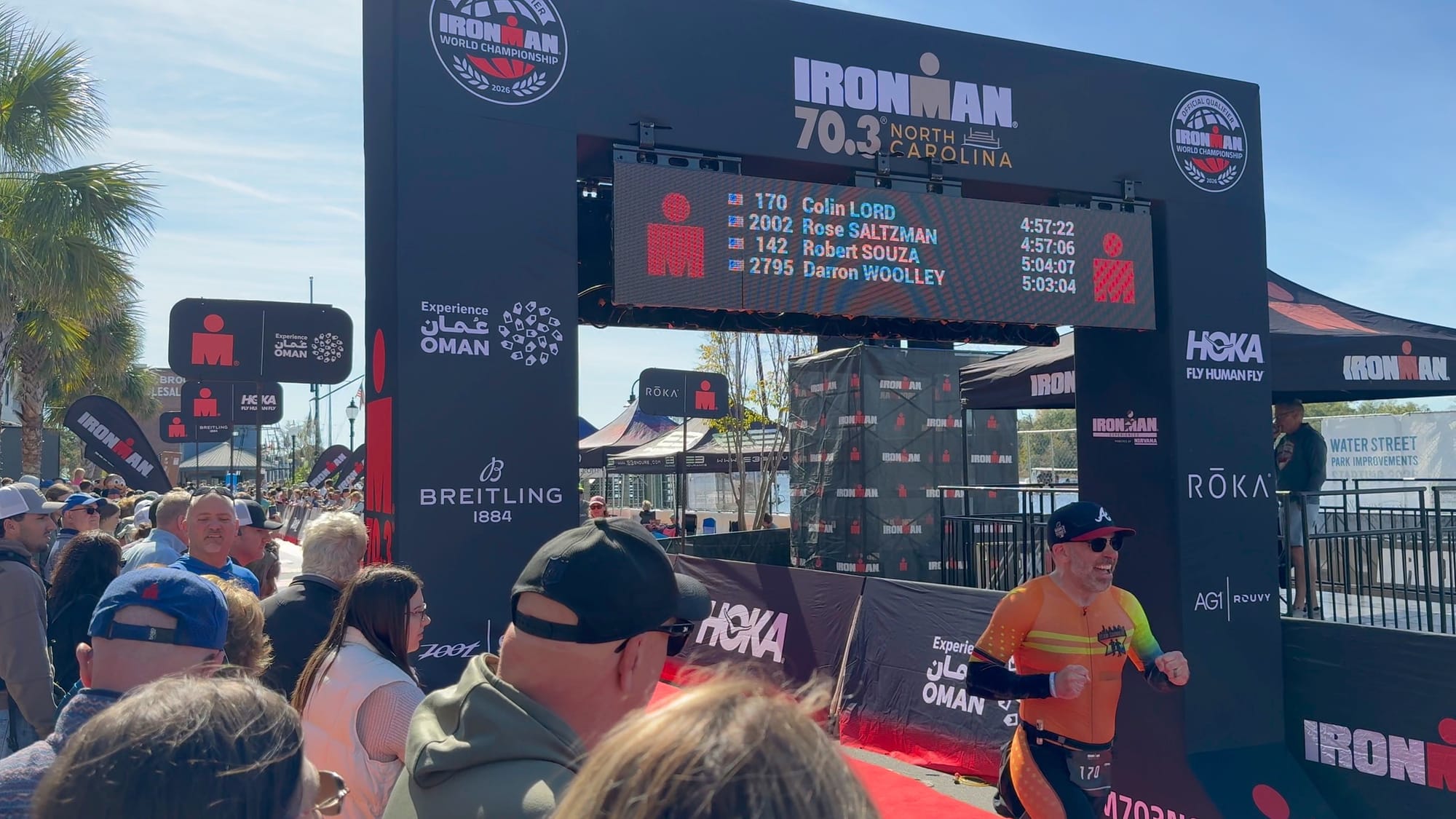 For everything that happened today, from the depths of despair and anger on the bike, it was impossible to believe I’d made it here. As long as I didn’t trip on the boardwalk near the finish line, I was going to finish in under 5 hours with a few minutes to spare.